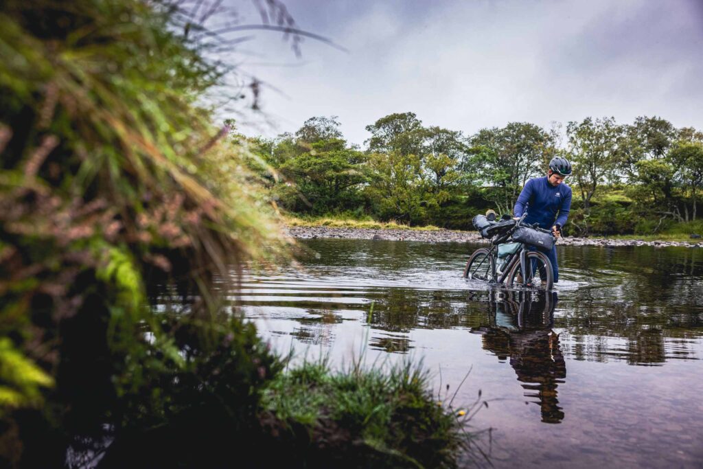 Dass es sich hierbei nicht um ein normales Outdoor Fotoshooting handelt, ist leicht vorstellbar. Diese Reise fand ausschließlich auf zwei Rädern statt, was eine Reihe von Herausforderungen mit sich brachte. Alles, was wir mitnehmen wollten, mussten wir aus eigener Kraft transportieren. Wir waren Wind und Wetter ausgesetzt – einmal unterwegs, gab es kein zurück. Da wir die Route vorab nur „theoretisch“ am Routenplaner geplant hatten, erwartete uns so manche Überraschung. Technisch extrem fordernde Passagen gehörten ebenso dazu, wie eine knietiefe Flussdurchquerung samt Mückenplage. Langeweile? Fehlanzeige!